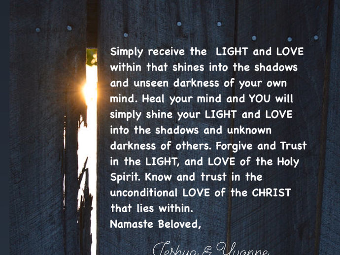 Welcome to my blog, a place of inspiration Love and peace. The messages Jeshua brings I often contemplate and ponder for days. They are filled with an energy and bring wisdom to the soul. I am grateful for these messages and how they can assist others who like me walk a journey of trust and Love. Since a child I was one who could see, and hear non physical. Through life and nature my channel of communication opened more and more. Life is a journey and planet earth is like a school. Each day we grow as we walk a path of Love and Jeshua and the guides walk with us. They love to teach and assist but because we have free will we need to ask. I send each who comes to this site my love and light. Namaste my brothers and sisters. 🌸💖💫☀️ Yvonne